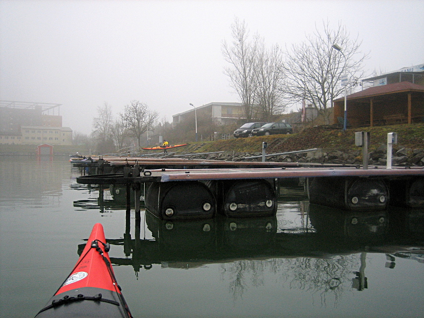 Start gegen 10 Uhr und heute mehr Pausen – in Linz ists dann trotzdem schon dunkel, Wetter hält, kein Regen. O-heim Stauraum zach, Mittagessen Brandstatt – Restaurant Essen ist keine gute Grundlage zum Kajaken.