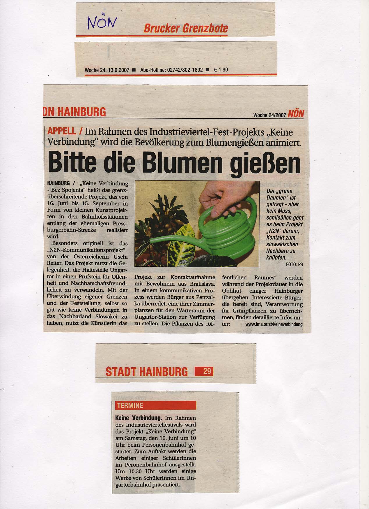 Mit meinem Projekt nutze ich die Gelegenheit die Haltestelle Ungartor in einen “Prüfstein†für Offenheit und Nachbarschaftsfreundlicheit zu verwandeln. Mit der Überwindung meiner eigenen Grenzen und der Feststellung selbst so gut wie keine Verbindungen in das Nachbarland Slovakei zu haben, nutze ich das Projekt zur Kontaktaufnahme mit BewohnerInnen aus Bratislava und Hainburg. In einem kommunikativen Prozess will ich die neu gewonnenen Kontaktpersonen überreden eine ihrer Zimmerplanzen für den Warteraum der Station Ungartor zur Verfügung zu stellen. Das Projekt transportiert meinen persönlichen Ausstausch mit NachbarInnen in Bratislava in den öffentlichen Raum und übergibt die Zimmerpflanzen für die Dauer des Projektes in die Obhhut der HainburgerInnen.