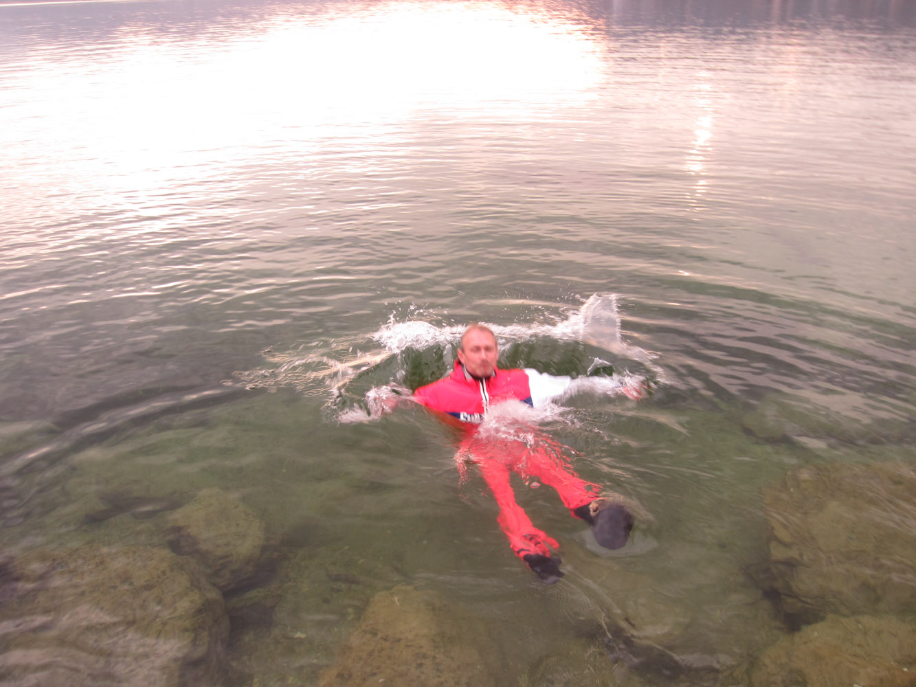 Die Traunmündung in Ebensee als gesetztes Ziel lässt sich vom Wasser aus nicht genau Orten, einen Seitenarm finden wir aber zumindest. Zurück in Gmunden Trocken- und Nasstest von den Anzügen im schon noch sehr kaltem Wasser.